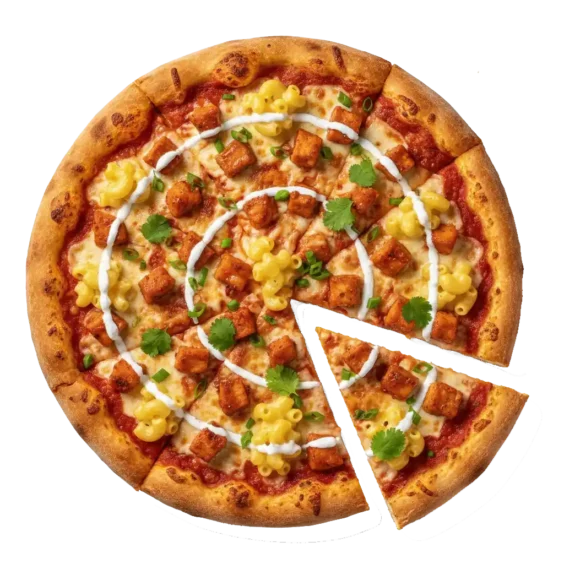 Buffalo Mac Chicken Pizza: Buffalo sauce, crispy chicken and macaroni