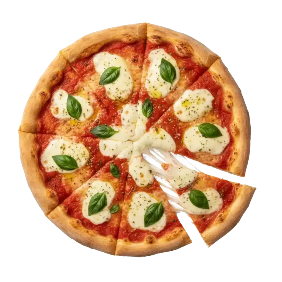 Margarita Pizza: Garlic butter sauce, fresh tomatoes, fresh basil and fresh mozzarella cheese drizzled with olive oil.